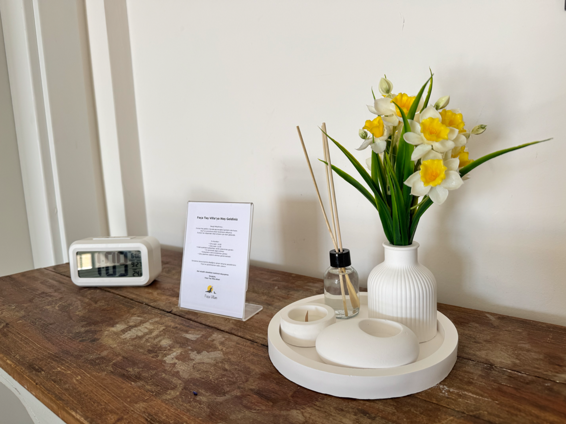 Misafirlerimizi temiz, ütülü çarşaflar ve beyaz sabun kokulu havlular karşılar. Her ayrıntı, tatiliniz boyunca kendinizi özel hissetmeniz için düşünülmüştür.